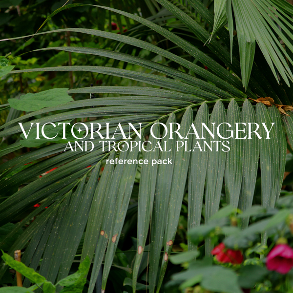 This carefully curated selection features a variety of rare and common tropical plants, including exotic orchids, towering palms, and strange pitcher plants. And with the addition of the Victorian orangery setting, this collection can truly transport your work to a bygone era of opulence and elegance.